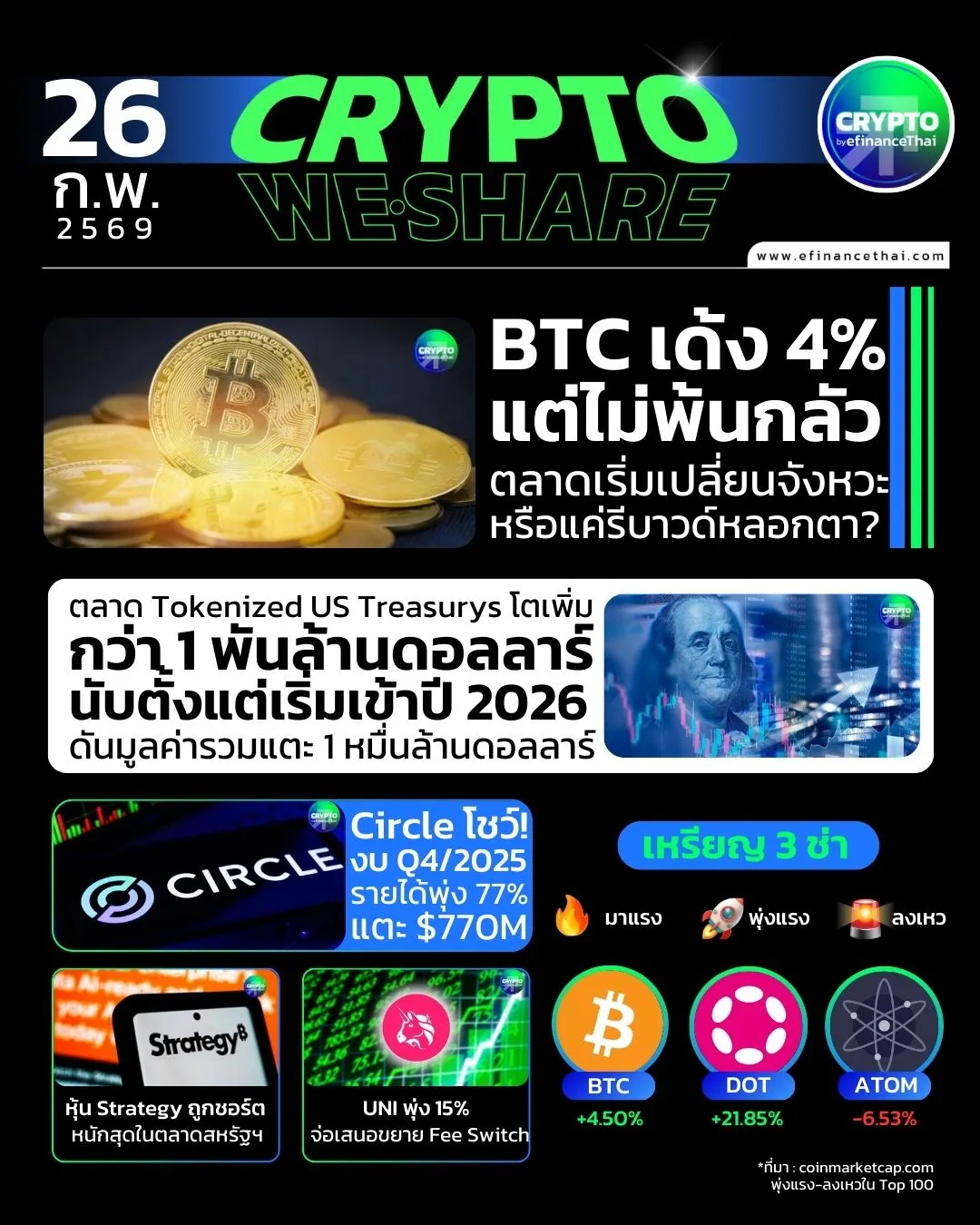ข่าวคริปโต26 ก.พ. 2569 17:47 น.5 ข่าวเด่นคริปโตประจำวันที่ 26 กุมภาพันธ์ 25695 ข่าวเด่นคริปโตประจำวันที่ 26 กุมภาพันธ์ 2569Translatestar_borderModal Upgrade PackageefinAIบิตคอยน์เด้ง 4% แต่ยังไม่พ้นโซนหวาดกลัว! ตลาดเริ่มเปลี่ยนจังหวะหรือแค่รีบาวด์หลอก? https://www.efin.finance/th/crypto/news/detail/bitcoin-rebound-4percent-extreme-fear-etf-inflow Tokenized US Treasurys โตทะลุ $10B ดันกระแส RWA เร่งตัว https://www.efin.finance/th/crypto/news/detail/tokenized-us-treasurys-market-growth-2026 Circle โชว์งบ Q4/2025 รายได้พุ่ง 77% แตะ 770 ล้านดอลลาร์ https://www.efin.finance/th/crypto/news/detail/circle-q4-2025-earnings-usdc-growth หุ้น Strategy ถูกชอร์ตหนักสุดในตลาดสหรัฐฯ xxxxxxxxxxxx x% xxxxxxxxxxxxxxxxxxxxxxx! xxxxxxxxxxxxxxxxxxxxxxxxxxxxxxxxxxxxxxxx? xxxxx://xxx.xxxx.xxxxxxx/xx/xxxxxx/xxxx/xxxxxx/xxxxxxx-xxxxxxx-xxxxxxxx-xxxxxxx-xxxx-xxx-xxxxxx xxxxxxxxx xx xxxxxxxxx xxxxxx $xxx xxxxxxxx xxx xxxxxxxxxxxx://xxx.xxxx.xxxxxxx/xx/xxxxxx/xxxx/xxxxxx/xxxxxxxxx-xx-xxxxxxxxx-xxxxxx-xxxxxx-xxxx xxxxxx xxxxxx xx/xxxx xxxxxxxxxx xx% xxx xxx xxxxxxxxxxxxxxxx://xxx.xxxx.xxxxxxx/xx/xxxxxx/xxxx/xxxxxx/xxxxxx-xx-xxxx-xxxxxxxx-xxxx-xxxxxx xxxx xxxxxxxx xxxxxxxxxxxxxxxxxxxxxxxxxxx xxxxxxxxxxxxxxxxxx $xx,xxxxxxxx://xxx.xxxx.xxxxxxx/xx/xxxxxx/xxxx/xxxxxx/xxxxxxxx-xxxx-xxxxxxx-xxxxx-xxxxxxx-xxxxxxxx-xxxxx xxx xxxx xx% xxxx xxxxxxx xxxxxxxx xxx xxxxxx xxxxxxxxxxxxxxx $xxx/xxxxxxx://xxx.xxxx.xxxxxxx/xx/xxxxxx/xxxx/xxxxxx/xxxxxxx-xxx-xxxxxx-xxxxxxxx-xxx-xxxxx-xxxxx efinAIแท็กที่เกี่ยวข้องข่าวคริปโตข่าวคริปโทคริปโตคริปโทEditing byสหรัฐ ฉัตราพงษ์ผู้สื่อข่าว สายสินทรัพย์ดิจิทัล สำนักข่าว อีไฟแนนซ์ไทย