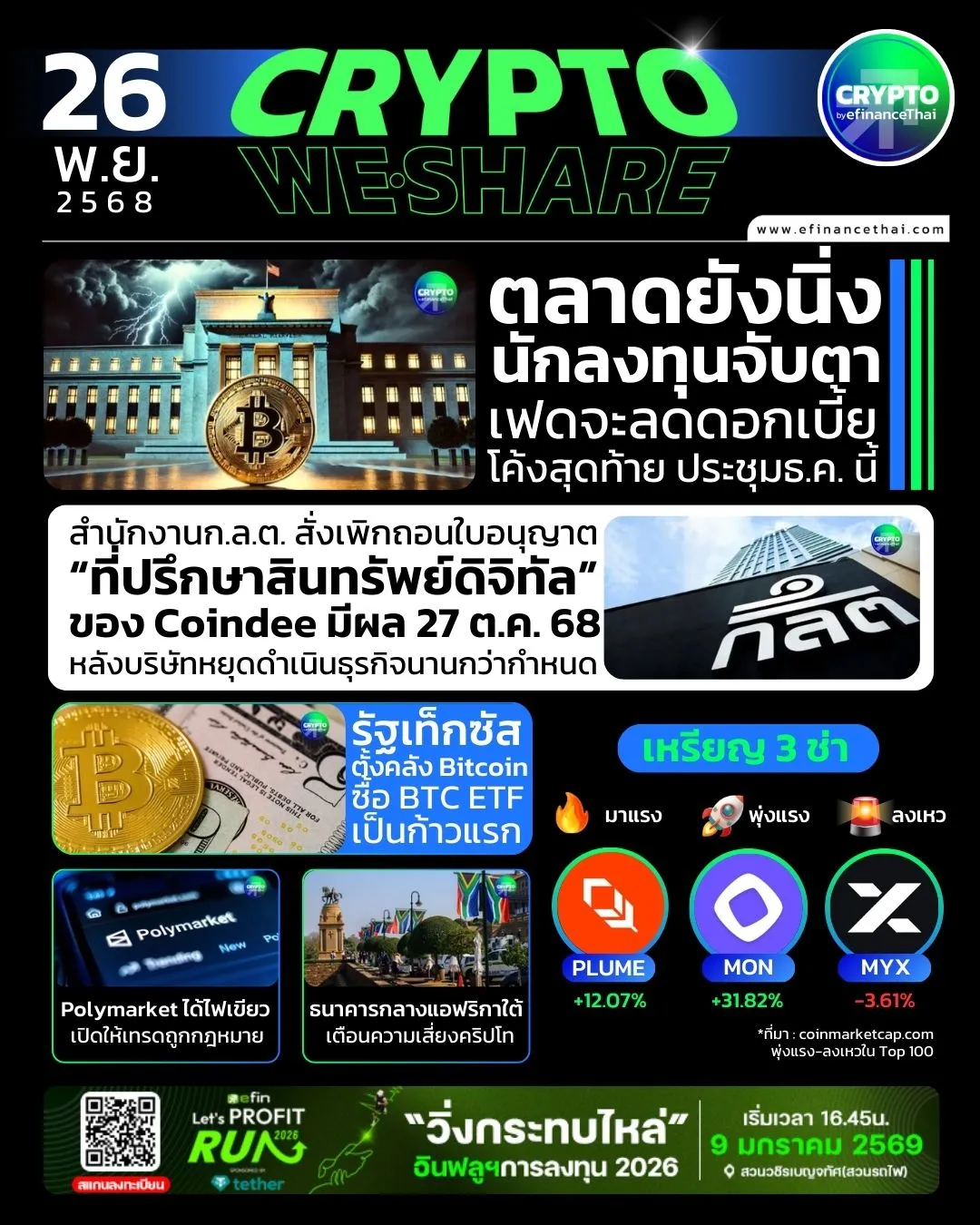 ตลาดคริปโทยังนิ่ง จับตาเฟดอาจลดดอกเบี้ยธ.ค.https://www.efin.finance/th/crypto/news/detail/bitcoin-87000-fed-dec-rate-cut-expectation ก.ล.ต. สั่งเพิกถอน Coindee จากการเป็น “ที่ปรึกษาสินทรัพย์ดิจิทัล”https://www.efin.finance/th/crypto/news/detail/sec-thailand-revokes-coindee-license เท็กซัสเริ่มตั้งคลังสำรอง Bitcoin ซื้อ BTC ETF มูลค่า $5M เป็นก้าวแรกhttps://www.efin.finance/th/crypto/news/detail/texas-bitcoin-reserve-buys-5m-ibit Polymarket ได้รับไฟเขียวจาก CFTC เปิดให้เทรดถูกกฎหมายhttps://www.efin xxxxxxxxxxxxxxxxx xxxxxxxxxxxxxxxxxxxxxx.x.xxxxx://xxx.xxxx.xxxxxxx/xx/xxxxxx/xxxx/xxxxxx/xxxxxxx-xxxxx-xxx-xxx-xxxx-xxx-xxxxxxxxxxx x.x.x. xxxxxxxxxxx xxxxxxx xxxxxxxxxx “xxxxxxxxxxxxxxxxxxxxxxxxx”xxxxx://xxx.xxxx.xxxxxxx/xx/xxxxxx/xxxx/xxxxxx/xxx-xxxxxxxx-xxxxxxx-xxxxxxx-xxxxxxx xxxxxxxxxxxxxxxxxxxxxxxxx xxxxxxx xxxx xxx xxx xxxxxx $xx xxxxxxxxxxxxxxxx://xxx.xxxx.xxxxxxx/xx/xxxxxx/xxxx/xxxxxx/xxxxx-xxxxxxx-xxxxxxx-xxxx-xx-xxxx xxxxxxxxxx xxxxxxxxxxxxxxxx xxxx xxxxxxxxxxxxxxxxxxxxxxxxx://xxx.xxxx.xxxxxxx/xx/xxxxxx/xxxx/xxxxxx/xxxxxxxxxx-xxxx-xxxxx-xxxxxxxx-xx xxxxxxxxxxxxxxxxxxxxxxxxxxxxxxxxxxxxxxxxx–xxxxxxxxxxxxxxxxx://xxx.xxxx.xxxxxxx/xx/xxxxxx/xxxx/xxxxxx/xxxxx-xxxxxx-xxxxx-xxxxxx-xxxxxxxxxx-xxxx