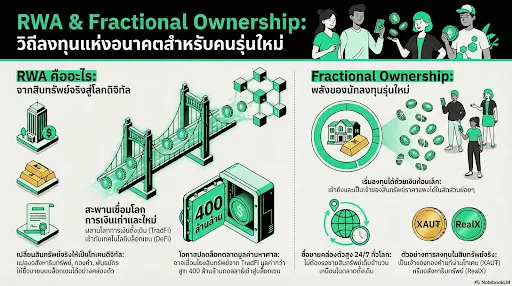 บทความนี้เราจะพาไปเจาะลึกตั้งแต่ความเข้าใจพื้นฐานของ RWA การเติบโตของตลาด ตัวอย่างสินทรัพย์ จนถึงอนาคตของ Fractional Ownership (การเป็นเจ้าของแบบสัดส่วน) ที่มีแนวโน้มว่าจะเปลี่ยนวิธีลงทุนของคนรุ่นต่อไปแบบสิ้นเชิง