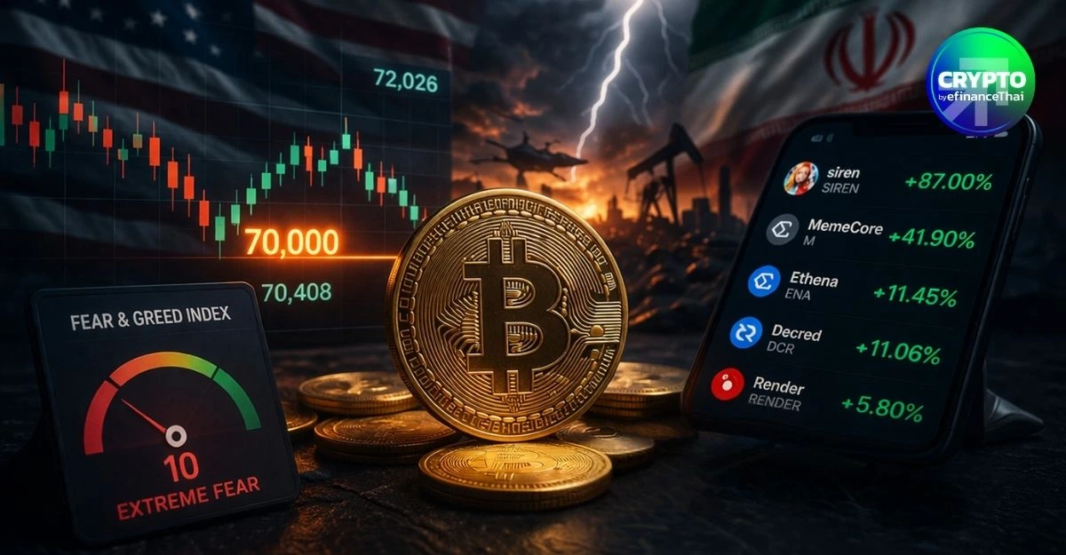 บิตคอยน์ยังยืนเหนือ 70,000 ดอลลาร์ ท่ามกลางแรงกดดันภูมิรัฐศาสตร์ อารมณ์นักลงทุนยังจม Extreme Fear ขณะที่ตลาด Altcoin เริ่มมีแรงเก็งกำไรเฉพาะตัว ดันบางเหรียญพุ่งแรงสวนภาพรวม