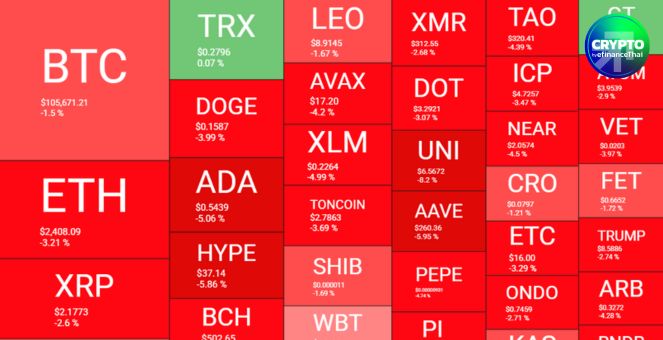 star_borderModal Upgrade Packageสรุปภาวะตลาด Crypto : แดงยกแผง! Bitcoin ดิ่ง 105k ฉุด altcoin ใน Top 100 ทรุดตาม2 ก.ค. 2568 08:55 น.