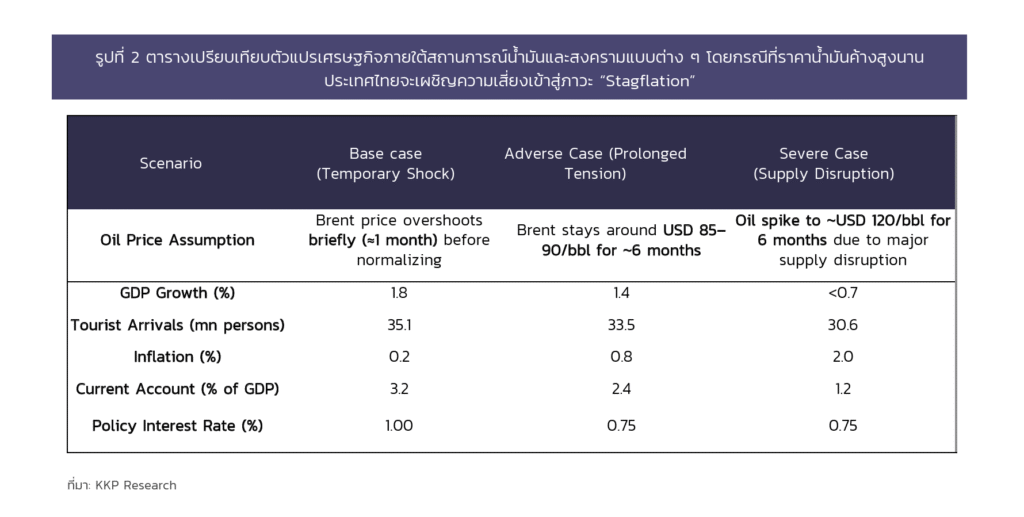 KKP Research : คาด GDP โต 1.8% แต่เตือน “ไทย” เสี่ยง “ถดถอยเชิงเทคนิค” หากน้ำมันพุ่งแตะ 120 ดอลลาร์ต่อบาเรล เกิน 6 เดือน