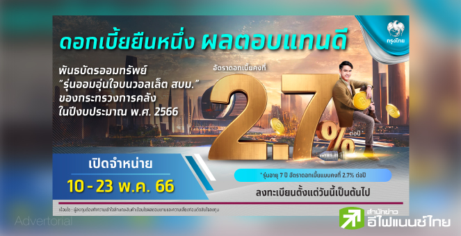 กรุงไทย ขายพันธบัตรวอลเล็ต สบม. รุ่นออมอุ่นใจ เริ่ม 10 พ.ค. 66 นี้