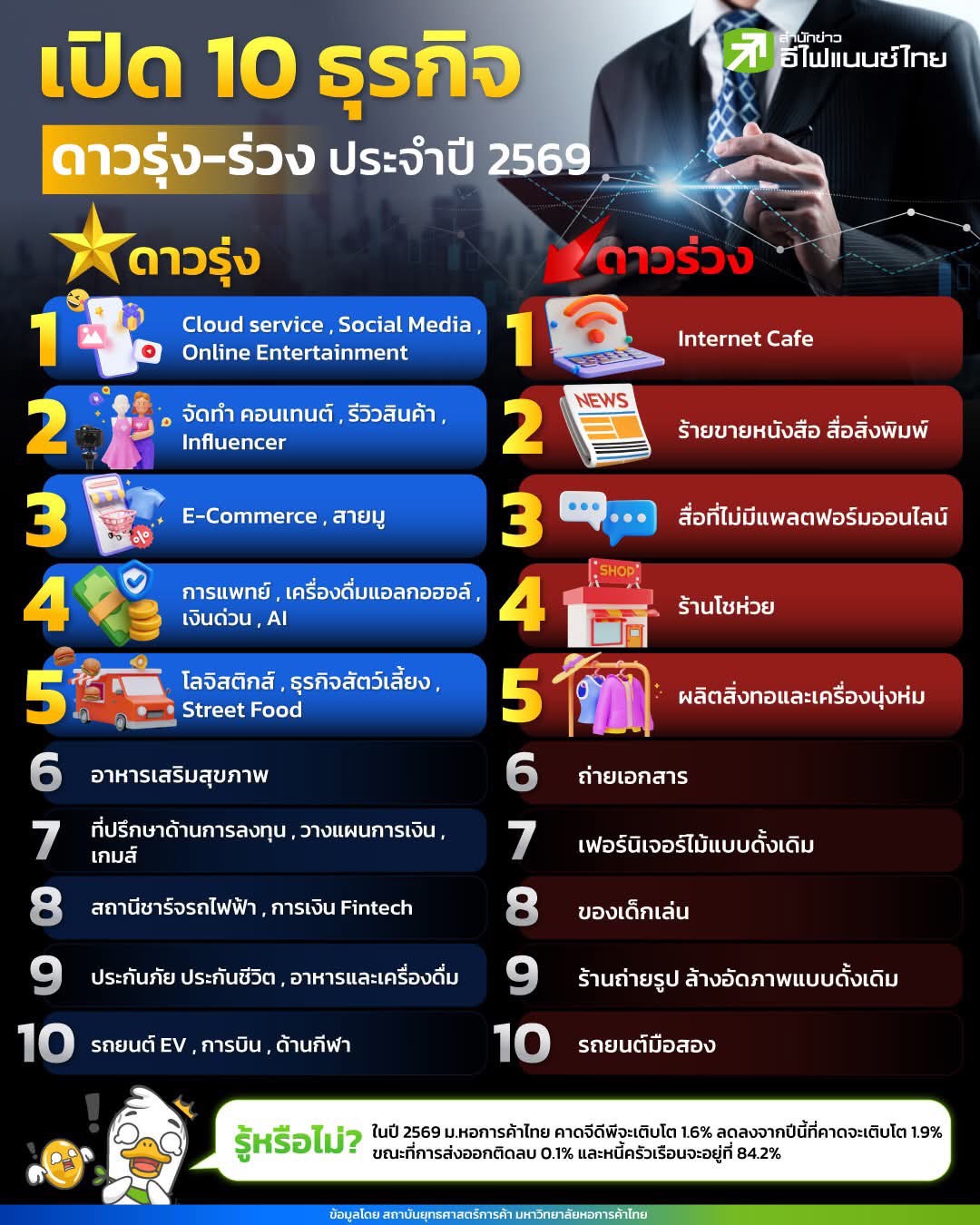 เปิดธุรกิจดาวเด่น ใครจะอยู่รอดในปี 2569
