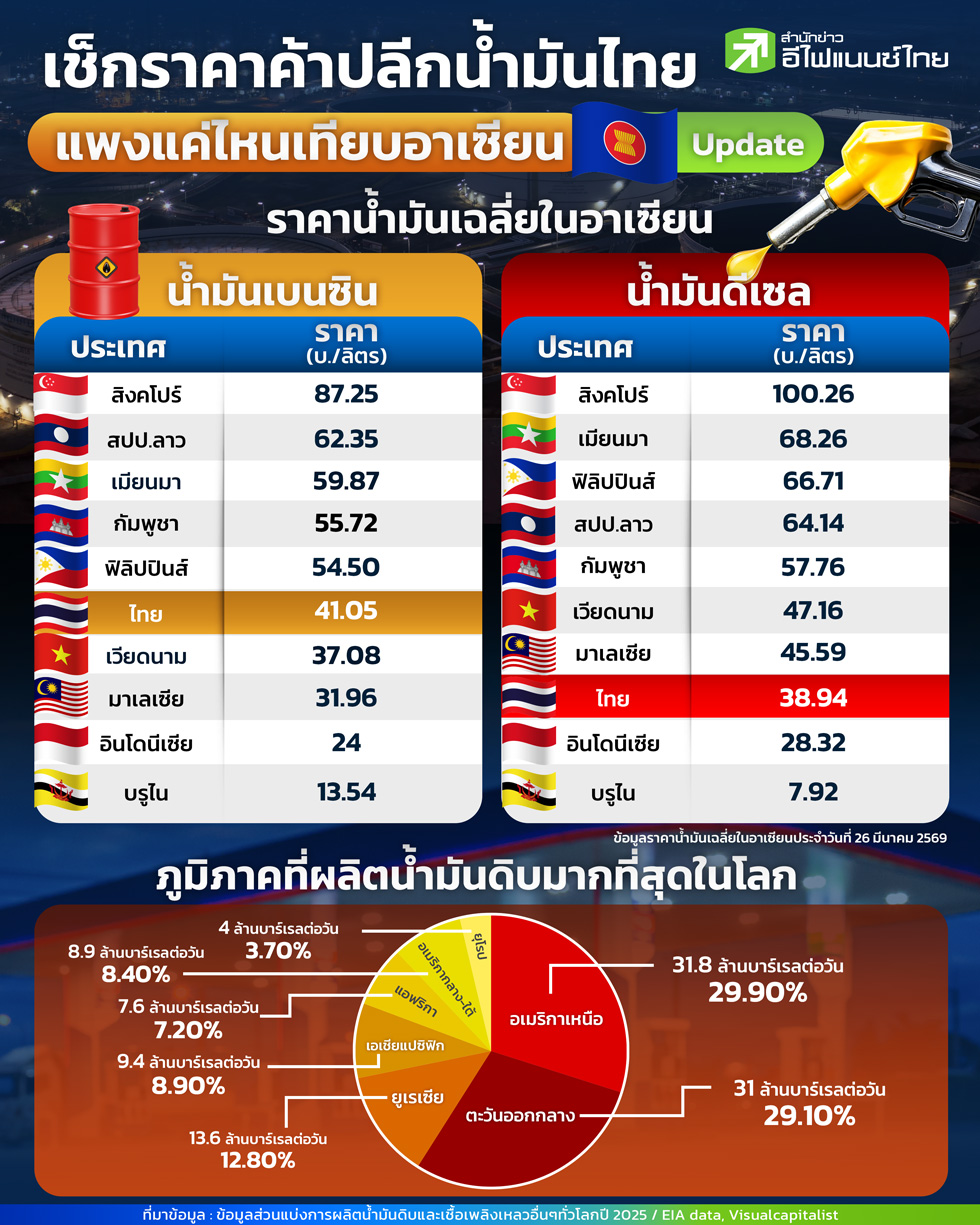 รูป เช็กราคาค้าปลีกน้ำมันไทย แพงแค่ไหนเทียบอาเซียน