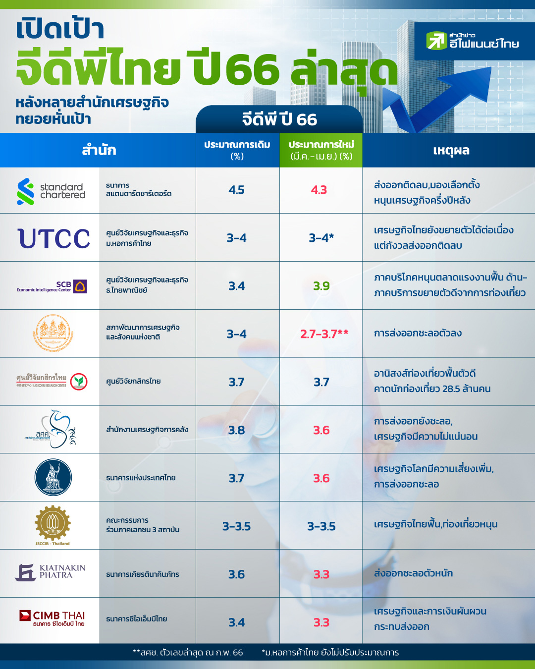 เศรษฐกิจไทยในปีนี้ มีแนวโน้มขยายตัวได้อย่างต่อเนื่องจากปีที่ผ่านมา โดยได้รับอานิสงส์จากภาคการท่องเที่ยวที่หลายสำนักประเมินไว้ว่าจะมีนักท่องเที่ยวต่างชาติตบเท้าเข้าไทยเกือบ 30 ล้านคน ขณะเดียวกันยังคาดว่าจะมีแรงส่งจากการบริโภคภายในประเทศด้วย อย่างไรก็ตาม แม้ว่า เศรษฐกิจจะมีแรงส่งจากการท่องเที่ยวที่ถือเป็นรายได้สำคัญมาก แต่สัดส่วนรายได้สำคัญของการเติบโตของเศรษฐกิจไทย ยังอยู่ที่ภาคการส่งออกซึ่งมีสัดส่วนมากถึง 60-70% ดังนั้น จากสถานการณ์เศรษฐกิจโลกที่มีความไม่แน่นอน มีความผันผวนสูง อาจส่งผลทำให้การส่งออกอาจจะยังไม่ฟื้นตัวดีนัก