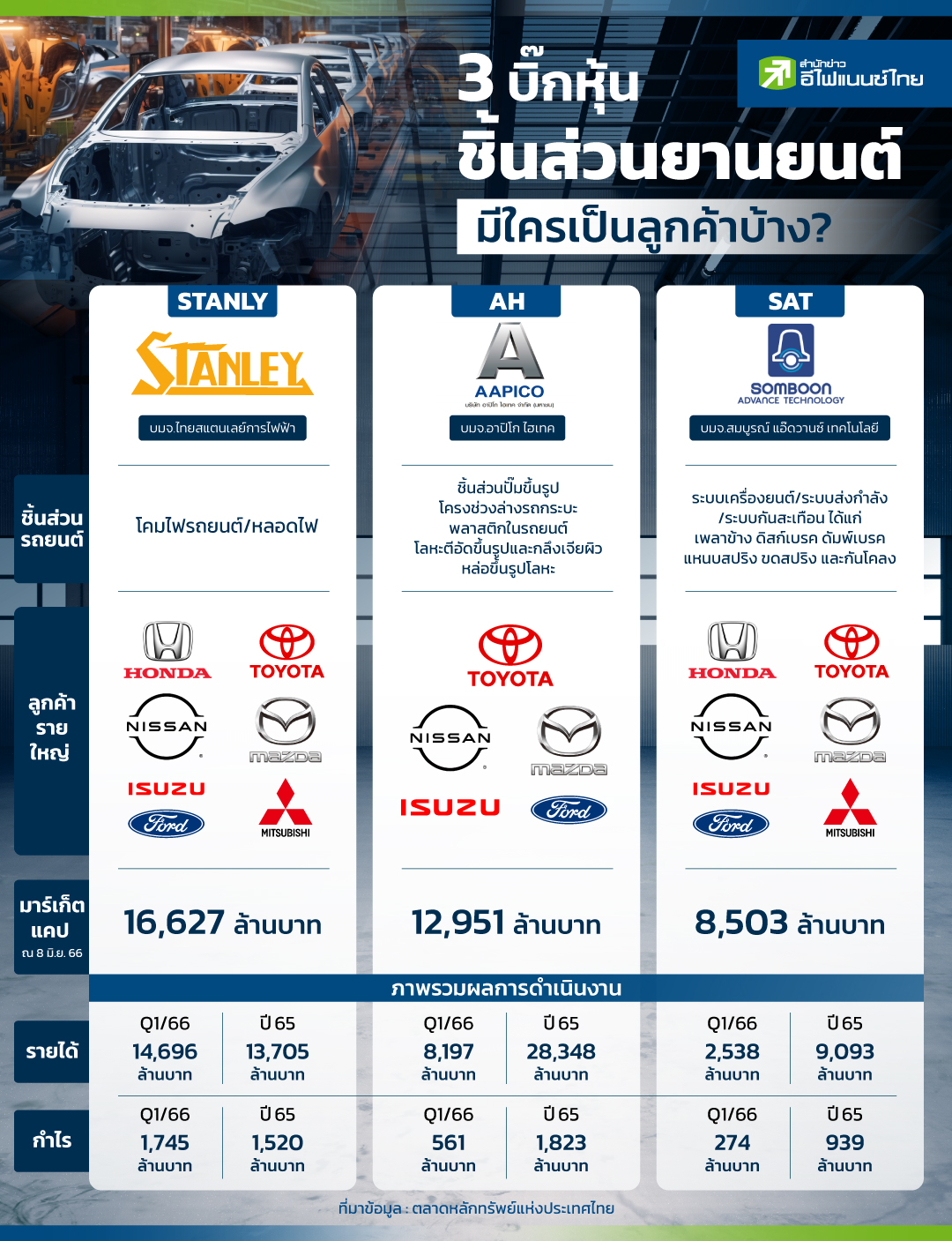 ปัจจุบันผู้ประกอบการผลิตชิ้นส่วนยานยนต์ไทยถือเป็นหนึ่งในห่วงโซ่อุปทานที่มีบทบาทสำคัญและมีความจำเป็นอย่างมากต่อค่ายรถยนต์ต่างๆ เพราะไทยยังเป็นฐานการผลิตยานยนต์ที่สำคัญของโลกแม้จะมีคู่แข่งเกิดขึ้นอย่างต่อเนื่อง อย่างไรก็ตามสัปดาห์ที่ผ่านมาก็มีประเด็นให้หุ้นในกลุ่มชิ้นส่วนยานยนต์ต่างตื่นตกใจกันไม่น้อย หลังมีกระแสข่าวว่าค่ายรถยนต์อีซูซุ (ISUZU) เตรียมย้ายฐานการผลิตจากประเทศไทยไปสู่ประเทศอินโดนีเซีย ก่อนที่เรื่องดังกล่าวจะกลายเป็นแค่ข่าวลือหลังทางบริษัท อีซูซุ มอเตอร์ ได้ออกมาปฎิเสธแล้วว่าไม่เป็นความจริงแต่อย่างใด