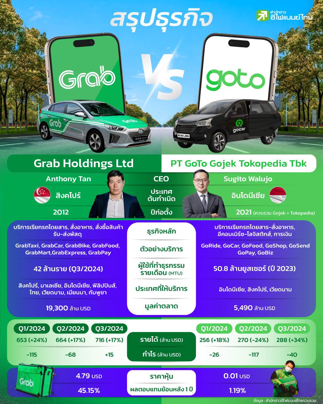 ท่ามกลางกระแสข่าวการควบรวมกิจการระหว่าง Grab Holdings ผู้ให้บริการแอปเรียกรถโดยสาร (Ride-Hailing) และรับ-ส่งอาหาร (Food Delivery) จากสิงคโปร์ กลับมาพิจารณาการเข้าเทคโอเวอร์ GoTo คู่แข่งจากอินโดนีเซียอีกครั้ง โดยมีการประเมินมูลค่าดีลรอบใหม่อยู่ที่ 7 พันล้านดอลลาร์สหรัฐ เป้าหมายหลักของดีลในครั้งนี้ คือลดต้นทุนและแรงกดดันจากการแข่งขันในเอเชียตะวันออกเฉียงใต้ โดย Grab และ GoTo ได้เจรจาการควบรวมกิจการอย่างต่อเนื่องในช่วงหลายปีที่ผ่านมา เพื่อลดภาระด้านต้นทุน ท่ามกลางการแข่งขันที่สูงในภูมิภาค ซึ่งมีผู้บริโภคมากกว่า