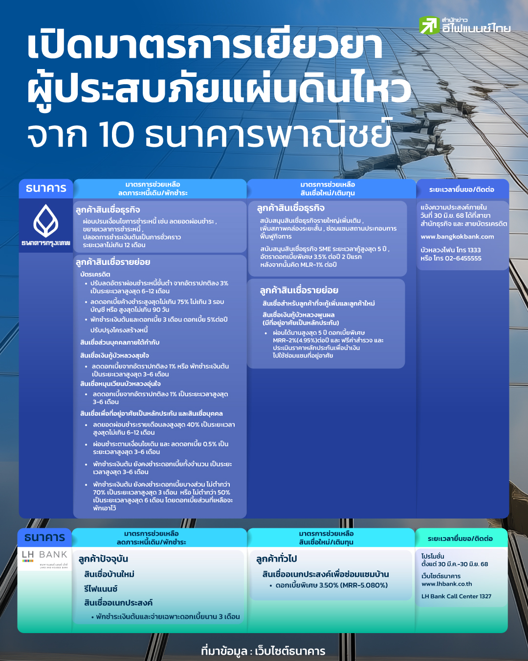 เปิดมาตรการเยียวยาผู้ประสบภัยแผ่นดินไหว จาก 10 ธนาคารพาณิชย์
