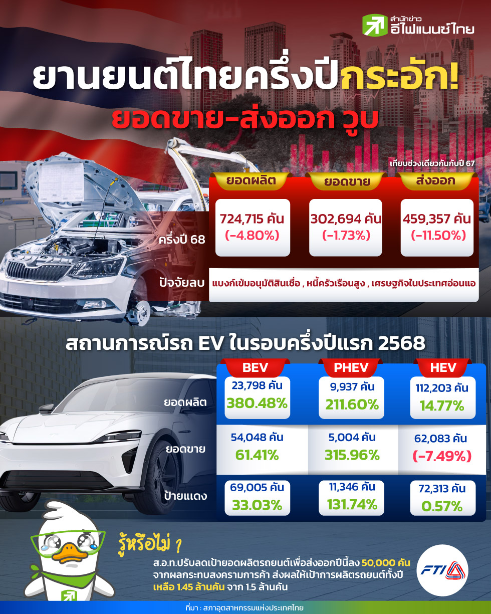 ยานยนต์ไทย ครึ่งปีกระอัก! ยอดขาย-ส่งออก วูบ