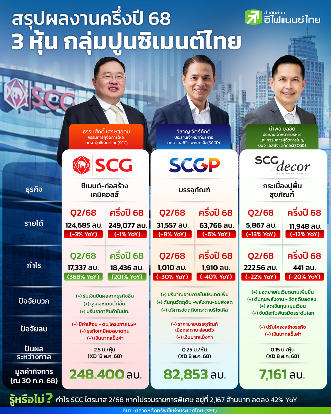 สรุปผลงานครึ่งปี 68 "3 หุ้น กลุ่มปูนซิเมนต์ไทย"