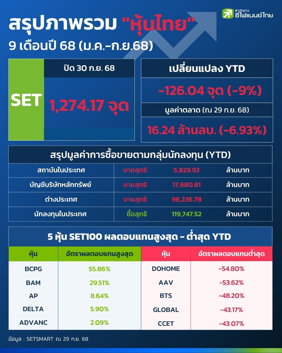 ตลาดหุ้นไทยในช่วง 9 เดือนแรกของปี 2568 ยังคงเผชิญแรงกดดันจากหลายปัจจัยสำคัญ ทั้งการฟื้นตัวของเศรษฐกิจไทยที่ยังเป็นไปอย่างเชื่องช้า ความไม่แน่นอนทางการเมืองจากการเปลี่ยนแปลงรัฐบาล รวมถึงมาตรการทางภาษีการค้าของสหรัฐฯ ที่ส่งผลต่อภาคการส่งออก โดยแม้ครึ่งปีแรกการส่งออกยังเร่งตัว แต่ในครึ่งปีหลังกลับมีสัญญาณชะลอตัวลง อีกหนึ่งปัจจัยที่สร้างแรงกระเพื่อมต่อตลาดคือทิศทางอัตราดอกเบี้ยขาลง ซึ่งแม้จะช่วยบรรเทาต้นทุนทางการเงิน แต่ก็ทำให้นักลงทุนมีมุมมองที่หลากหลายต่อการลงทุน ส่งผลให้ตลาดหุ้นไทยเคลื่อนไหวผันผวนตลอดทั้งช่วงที่ผ่านมา