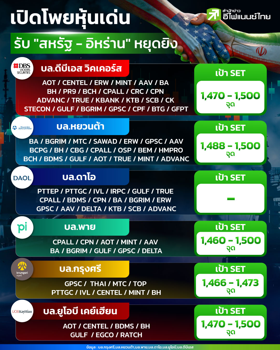 เปิดโพยหุ้นเด่น รับ “สหรัฐ-อิหร่าน” หยุดยิง