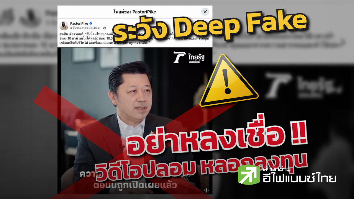 • ซีพีกรุ๊ป เตือนปชช.อย่าหลงเชื่อ  คลิปปลอม “ศุภชัย เจียรวนนท์” ชวนลงทุนออนไลน์