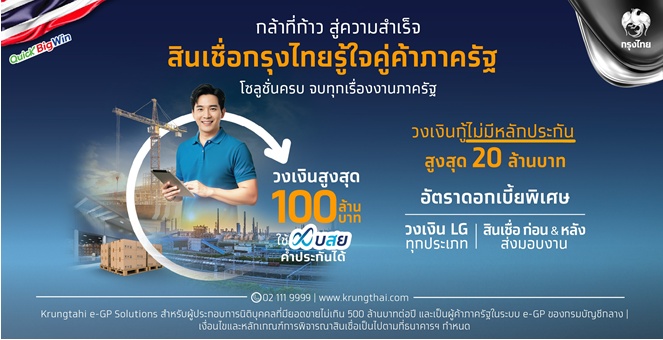 สำนักข่าวอีไฟแนนซ์ไทย- -29 ธ.ค. 68 9:58: น. ธนาคารกรุงไทย เปิดตัว “สินเชื่อกรุงไทยรู้ใจคู่ค้าภาครัฐ” เสริมสภาพคล่องผู้ประกอบการนิติบุคคล (SME) ที่เป็นคู่ค้าภาครัฐ ให้เข้าถึงแหล่งทุนได้ง่ายและรวดเร็ว สนับสนุนนโยบาย Quick Big Win ของรัฐบาล เพื่อขับเคลื่อนเศรษฐกิจฐานรากอย่างต่อเนื่อง สินเชื่อถูกออกแบบมาเพื่อธุรกิจที่ทำงานกับภาครัฐโดยเฉพาะ ครอบคลุมทุกขั้นตอนตั้งแต่เสนอราคา ประมูลงาน ทำสัญญา ไปจนถึงส่งมอบงาน ธนาคารให้วงเงินสินเชื่อสูงสุด 100 ล้านบาท และวงเงินกู้ไม่มีหลักทรัพย์ค้ำประกัน (Clean Loan) สูงสุด