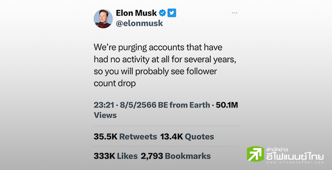 • อีลอน มัสก์ ทวีตจะลบบัญชีไม่เคลื่อนไหวบน Twitter เพื่อเพิ่มพื้นที่