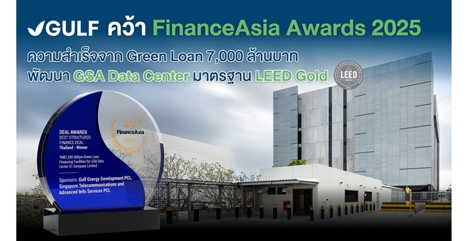 star_borderModal Upgrade PackageGULF คว้ารางวัล FinanceAsia จัดหา Green Loan 7.3 พันลบ.เดินหน้าขยาย Data Center อีก 2 แห่ง รองรับ AI ดันไทยสู่ฮับดิจิทัล16 มี.ค. 2569 14:04 น.