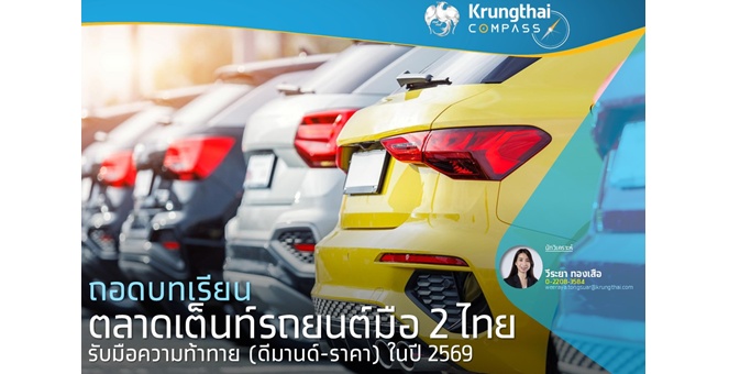 star_borderModal Upgrade PackageKrungthai COMPASS ถอดบทเรียนตลาดเต็นท์รถยนต์มือ 2 ไทย รับมือความท้าทาย (ดีมานด์-ราคา) ในปี 25694 Mar 2026 15:51