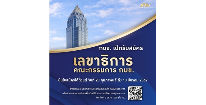 กบข. ประกาศรับสมัครบุคคลเข้ารับการสรรหาคัดเลือกให้ดำรงตำแหน่งเลขาธิการ