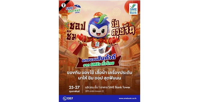 • SME D Bank เชิญเที่ยว ‘SME D Market’ เดือน ก.พ.69 ฉลองตรุษจีน ระดมสุดยอดสินค้าดีจากเอสเอ็มอีไทย ชอปชิมจุใจกระตุ้นเศรษฐกิจสุดคึกคัก