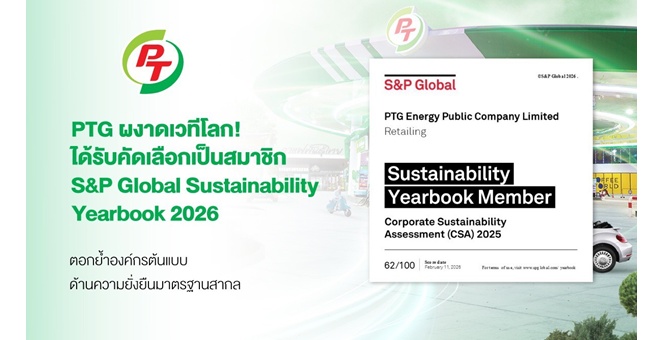 star_borderModal Upgrade PackagePTG ผงาดเวทีโลก! คว้าการรับรอง S&P Global Sustainability Yearbook 2026 ตอกย้ำองค์กรต้นแบบด้านความยั่งยืนมาตรฐานสากล20 Feb 2026 09:46