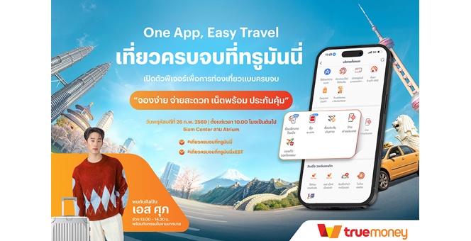 star_borderModal Upgrade Packageทรูมันนี่ ชวนร่วมงาน “One App, Easy Travel เที่ยวครบจบที่ทรูมันนี่” พร้อมใกล้ชิด “เอส–ศุภ สง่าวรวงศ์” 26 ก.พ. นี้ ที่สยามเซ็นเตอร์20 Feb 2026 09:55