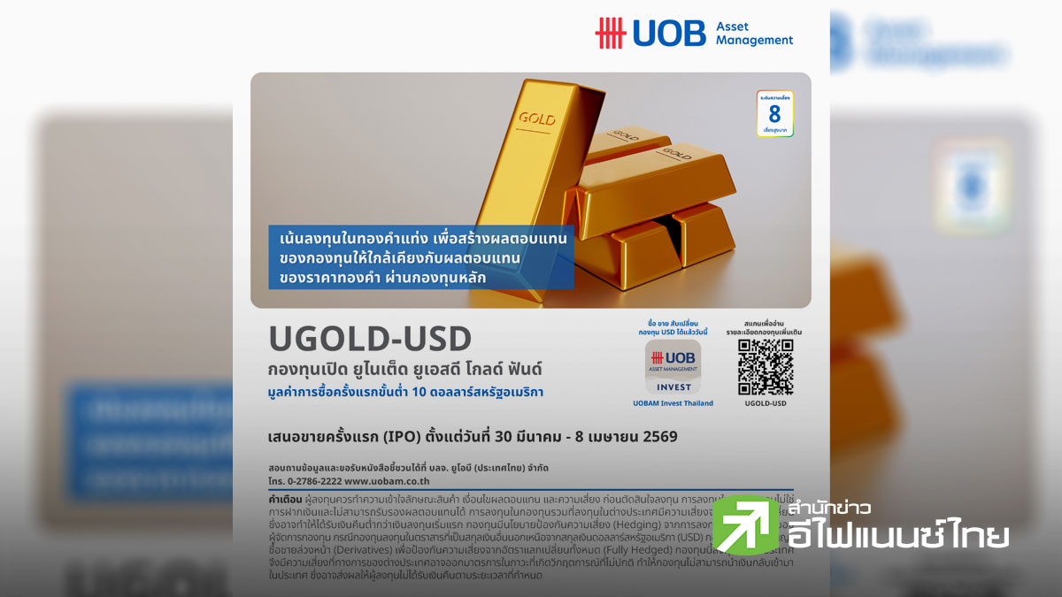 star_borderModal Upgrade Packageบลจ.ยูโอบี เปิดตัวกองทุน UGOLD-USD เพิ่มโอกาสลงทุนในทองคำผ่านกองทุนหลัก พร้อมรับผลตอบแทนสกุลเงินดอลลาร์สหรัฐ30 มี.ค. 2569 10:32 น.