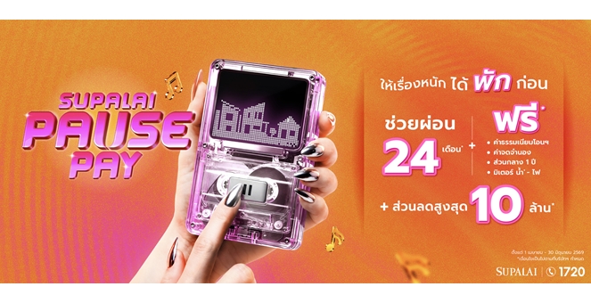 star_borderModal Upgrade Packageศุภาลัยชวน “กด Pause ให้เรื่องหนัก ได้พักก่อน” ปล่อยโปรแรง Supalai Pause Pay ช่วยผ่อนนาน 24 เดือน แจกฟรีเพียบ ลดสูงสุด 10 ล้าน30 มี.ค. 2569 11:03 น.