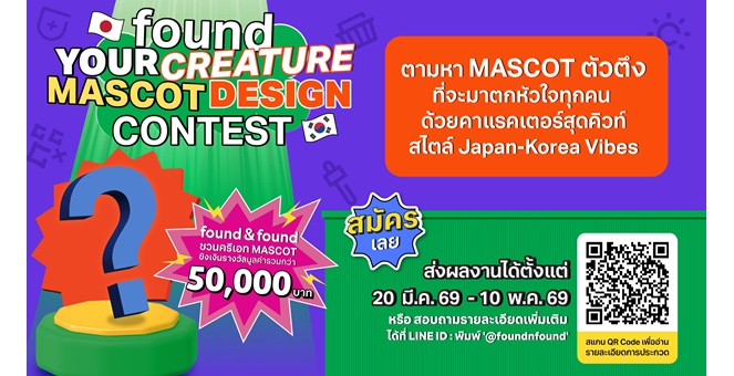 star_borderModal Upgrade Packagefound & found ตามหาคาแรคเตอร์สุดคิวท์ ชวนครีเอทไอเดียใหม่ๆ ในเวที “found your CREATURE MASCOT DESIGN CONTEST” ชิงรางวัลรวมกว่า 50,000 บาท19 มี.ค. 2569 16:04 น.