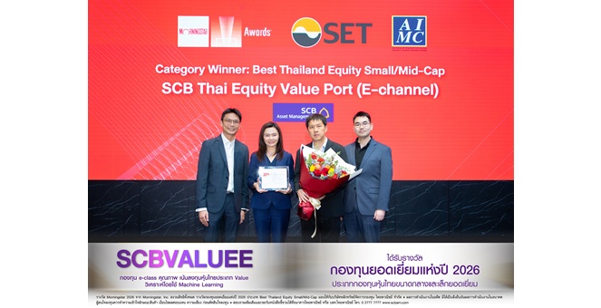 star_borderModal Upgrade Packageกองทุน SCBVALUEE จาก บลจ.ไทยพาณิชย์ กองทุน e-class หุ้นไทยคุณภาพ คว้ารางวัลกองทุนยอดเยี่ยมแห่งปีจากเวที Morningstar Awards 202619 มี.ค. 2569 16:23 น.