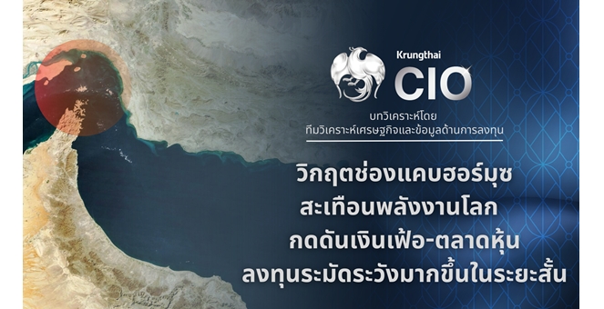 star_borderModal Upgrade PackageKrungthai CIO ปรับมุมมองลงทุนระมัดระวังขึ้นในระยะสั้น ชี้วิกฤตช่องแคบฮอร์มุซสะเทือนพลังงานโลก กดดันเงินเฟ้อ-ตลาดหุ้น17 Mar 2026 16:22