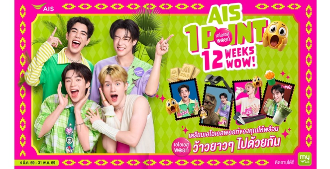 star_borderModal Upgrade PackageModal Upgrade PackageAIS จัดใหญ่ จัดเต็ม! ขนทัพรางวัลสุดเซอร์ไพรซ์ เพียงใช้เอไอเอส พอยท์ 1 คะแนน แลกรับสิทธิ์ลุ้นรางวัล “12 WOW!” ให้แลกต่อเนื่อง 12 สัปดาห์เต็ม4 มี.ค. 2569 15:00 น.