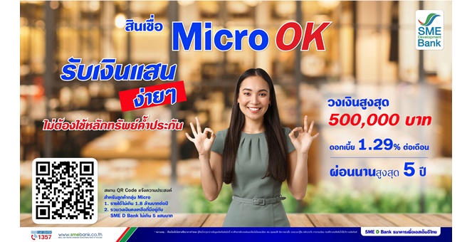 star_borderModal Upgrade PackageSME D Bank อัดฉีด 500 ล้านบาท เปิดตัวสินเชื่อใหม่ ‘Micro OK’ ติดเครื่อง SMEsจิ๋วแต่แจ๋ว กู้ง่ายรับเงินแสนทันใจ ไม่ต้องใช้หลักทรัพย์ค้ำประกัน17 ส.ค. 2566 11:34 น.