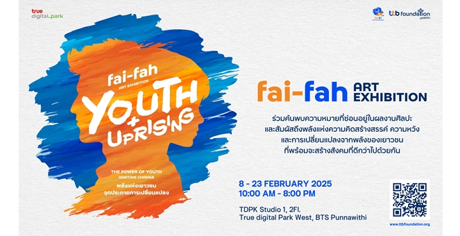 star_borderModal Upgrade Packageไฟ-ฟ้า โดย ทีทีบี จับมือ ทรู ดิจิทัล พาร์ค เปิดนิทรรศการศิลปะ “fai-fah Art Exhibition : Youth + Uprising”10 ก.พ. 2568 12:23 น.