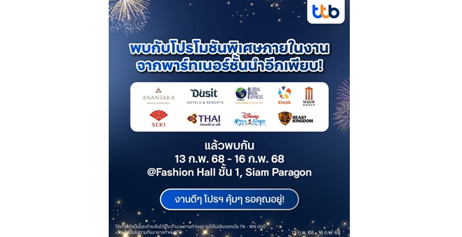 star_borderModal Upgrade Packageทีทีบี จัดงาน “ทีทีบี อัศจรรย์ เฟสติวัล” มอบโปรโมชันครอบคลุมทุกไลฟ์สไตล์ ราคาพิเศษสุดๆ พร้อมความสนุกจัดเต็ม 4 วัน ในวันที่ 13-16 ก.พ.นี้ ที่แฟชั่นฮอลล์ ชั้น 1 สยามพารากอน11 ก.พ. 2568 14:41 น.