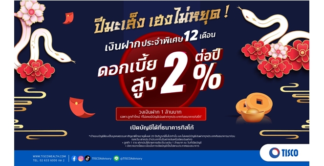 star_borderModal Upgrade Packageธ.ทิสโก้ ชวนมั่งมีรับปีมะเส็งกับเงินฝากประจำพิเศษ 12 เดือน ดอกเบี้ย 2.0% ต่อปี15 ม.ค. 2568 12:36 น.