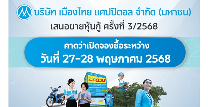 star_borderModal Upgrade PackageMTC เตรียมเสนอขายหุ้นกู้ใหม่ พร้อมชูดอกเบี้ย 3.90%-4.30% ต่อปี คาดเปิดจองซื้อระหว่างวันที่ 27-29 พฤษภาคม 2568 ผ่าน 18 สถาบันการเงินชั้นนำ8 เม.ย. 2568 09:39 น.