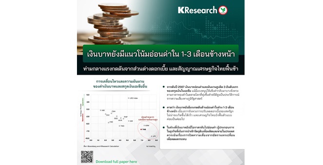 star_borderModal Upgrade PackageModal Upgrade Packageศูนย์วิจัยกสิกรฯ คาดเงินบาทยังมีแนวโน้มอ่อนค่าใน 1-3 เดือนข้างหน้า ท่ามกลางแรงกดดันจากส่วนต่างดอกเบี้ย และสัญญาณเศรษฐกิจไทยฟื้นช้า13 พ.ค. 2567 16:35 น.