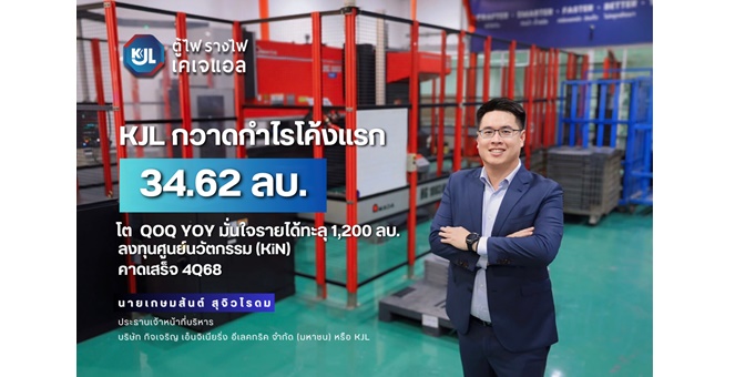 KJL ออกตัวแรง กวาดกำไรโค้งแรก 34.62 ลบ. โต QOQ YOY มั่นใจรายได้ทะลุ 1,200 ลบ.ลงทุนศูนย์นวัตกรรม (KiN) คาดเสร็จ 4Q68
