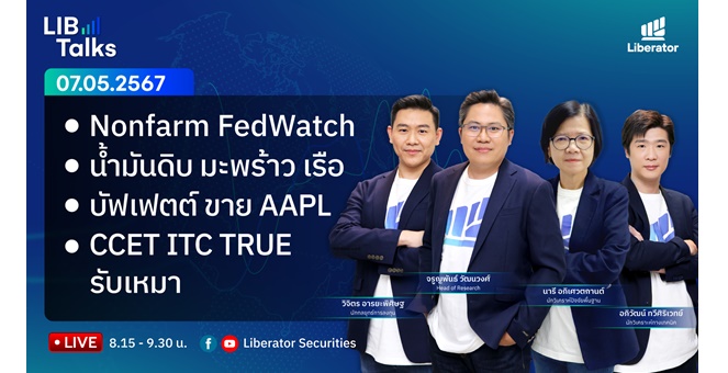 บล.ลิเบอเรเตอร์ : `LIB Guide Daily Strategy` 07/05/2567