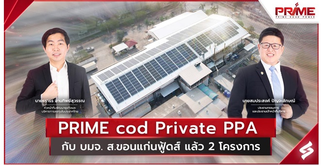 PRIME cod Private PPA กับ บมจ. ส. ขอนแก่นฟู้ดส์แล้ว 2 โครงการ