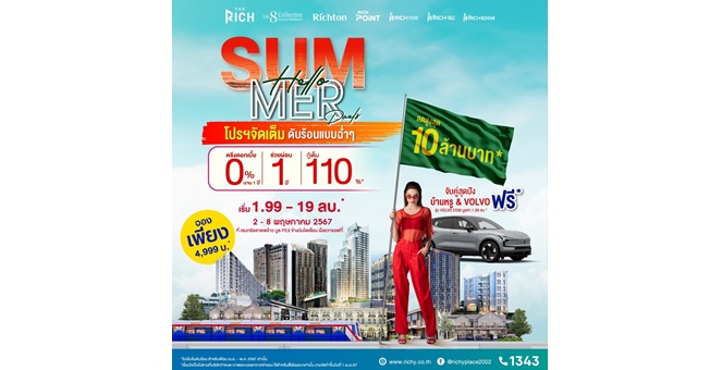 RICHY ขานรับมาตรการกระตุ้นอสังหาฯ ลดค่าโอนเหลือ 0.01% นำ 12 โครงการบ้าน-คอนโด จัดโปรโมชั่น “Hello!! Summer Deals” ลดสูงสุด 10 ลบ. ตรึงดอกเบี้ย 0% ช่วยผ่อน 1 ปี ฟรีวันโอน
