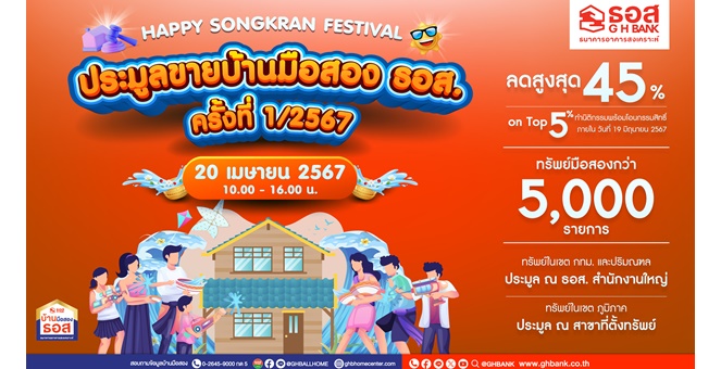 มีบ้านต้อนรับสงกรานต์กับ ธอส.!! ในงานประมูลขายบ้านมือสอง ครั้งที่ 1/2567