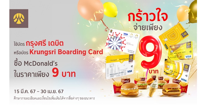 star_borderModal Upgrade PackageModal Upgrade Packageพิเศษ ใช้บัตรกรุงศรี เดบิต หรือบัตร Krungsri Boarding Card ซื้อ McDonald`s จ่ายเพียง 9 บาท27 มี.ค. 2567 14:42 น.