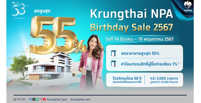 star_borderModal Upgrade PackageModal Upgrade Packageกรุงไทย 58 ปี จัดใหญ่ NPA Birthday Sale คัด คุ้ม ครบ ทรัพย์มือสองคุณภาพดี ทำเลเด่นกว่า 3,000 รายการ ลดสูงสุด 55%27 มี.ค. 2567 15:33 น.