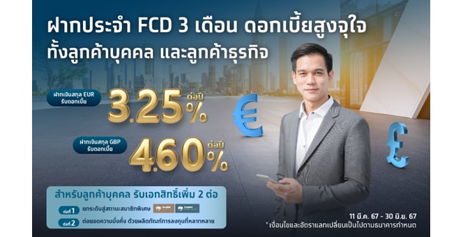 star_borderModal Upgrade PackageModal Upgrade Package“กรุงไทย” เพิ่มทางเลือกให้ผู้ฝากเงิน ออกบัญชีเงินฝากประจำ 3 เดือน ดอกเบี้ยสูงจุใจ เงินยูโร รับดอกเบี้ย 3.25% ต่อปี และเงินปอนด์ รับดอกเบี้ย 4.60 % ต่อปี ทั้งลูกค้าบุคคล และลูกค้าธุรกิจ25 มี.ค. 2567 11:09 น.