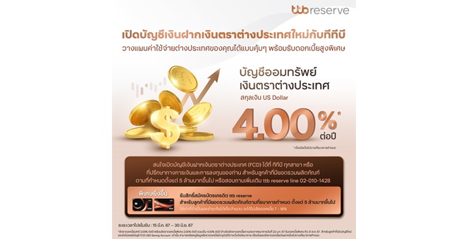 star_borderModal Upgrade PackageModal Upgrade Packageทีทีบี ชวนวางแผนค่าใช้จ่ายธุรรรมที่เกี่ยวข้องกับสกุลเงินต่างประเทศแบบคุ้ม ๆ “บัญชีออมทรัพย์เงินตราต่างประเทศ สกุลเงิน US Dollar” พร้อมรับอัตราดอกเบี้ยพิเศษสูงถึง 4.00% ต่อปี*25 มี.ค. 2567 11:07 น.