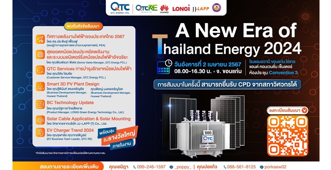 • QTC เอาใจชาวขอนแก่นและจังหวัดใกล้เคียง จัดสัมมนา `A New ERA of Thailand Energy 2024` ครั้งที่ 2 ประจำปี 2024