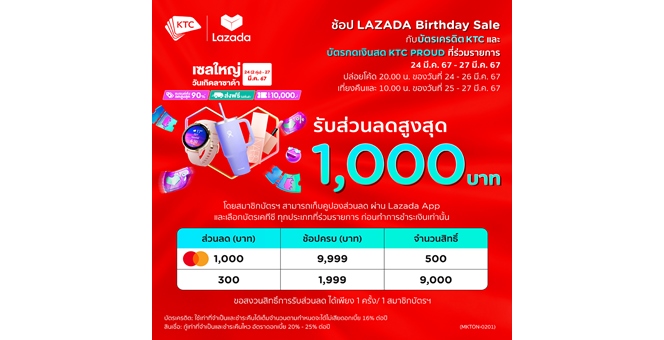 star_borderModal Upgrade PackageModal Upgrade Packageเคทีซีร่วมฉลองครบรอบ 12 ปี ลาซาด้าในไทย สมาชิกบัตรเครดิตและบัตร “เคทีซี พราว” รับส่วนลดสูงสุด 1,000 บาท19 มี.ค. 2567 10:33 น.