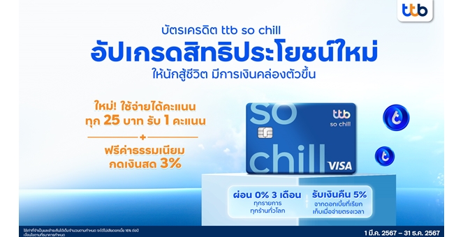 star_borderModal Upgrade PackageModal Upgrade Packageทีทีบี อัปเกรดสิทธิประโยชน์บัตรเครดิต ttb so chill ใหม่ ให้นักสู้ชีวิตมีการเงินคล่องตัวขึ้น ใช้จ่ายผ่านบัตรทุก 25 บาท รับ 1 คะแนน เริ่ม 1 มี.ค.นี้11 มี.ค. 2567 11:58 น.